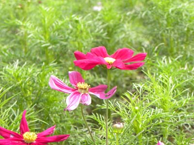 「 三陽メデアフラワーミュージアム前庭の花コスモスに 」