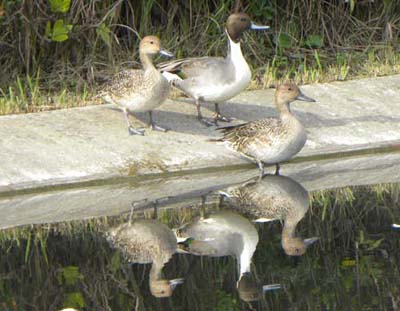 群がります。目的の冬の渡り鳥はオナガガモが一組だけです。